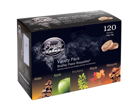 Bradley Smoker 5 smaker är ett bra startpaket för dig som just köpt ditt Bradley Smoker rökskåp. Paketet innehåller fem olika smaker av briketter: Al, Äpple, Hickory, Lönn och Mesquite som ger dig 8 timmar röktid per smak. Det är tillräckligt för att du ska kunna testa dig fram och hitta din favorit bland alla briketter.