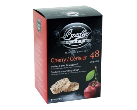 Bradley Smokers körsbärsbriketter har en söt och fyllig smak som passar fint med kyckling, vilt och ostar. Här i 48-pack som ger 16 timmar röktid.