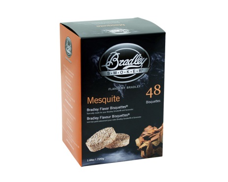 Bradley Smokers Mesquite är rökigare än hickory men också sötare och ger en melassliknande röksmak. Passar bra till allt vilt och är utmärkt till vildsvin och hjort. Mesquite framställs av frökapslar från mesquiteträdet. Här i ett 48-pack som ger 16 timmar röktid.