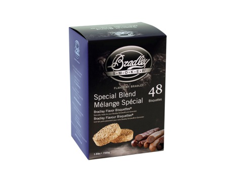 Bradley Smokers egen specialblandning med hemligt recept. Mild men tydlig smak som passar till allt kött. 48 briketter som ger en röktid på 16 timmar.