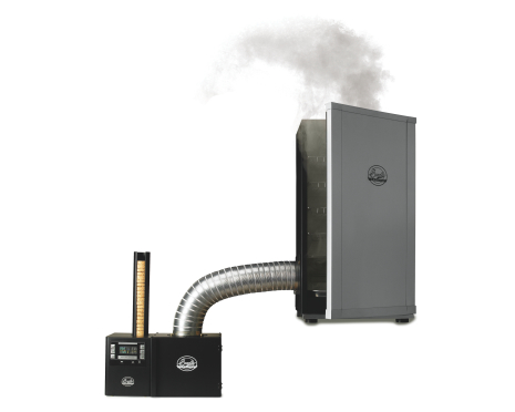 - Enheten ansluts med en 90 cm flexibel metallslang till Bradley Smoker rökgenerator och rökskåp