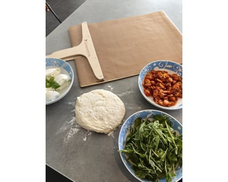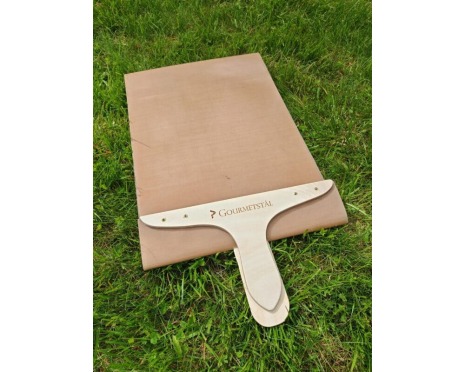 Äntligen slipper vi spill av topping! Fantastisk pizzaspade för att slippa oroa sig för att saker ska spilla över. Du kan fånga upp pizzor från bordet utan några som helst problem och bara glida av dem på Gourmetstålet eller andra pizza ugnar utan problem. Stor modell på hela 32,5x40cm av upptagningsyta (inkl handtag 60cm lång) gör att du kan baka rejäla pizzor. Går även att lyfta upp annat med denna som bröd, bakverk och för att skoja till det går det även att skjutsa på ketchup & senap