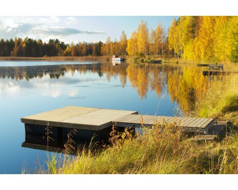 Brygga Ulpukka levereras med ett landfäste som kan användas både på lös mark eller för montering på berghäll. När landfästet är på plats lyfter du dit den monterade bryggan på landfästet. Allt är klart och du kan börja använda din brygga.