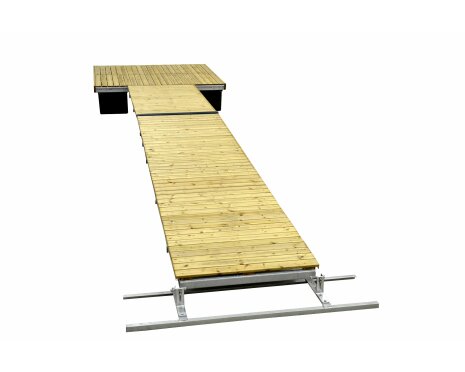 - Gångjärn på landgången, mellan de två pontonerna, gör att bryggan alltid ligger i våg utanför gångjärnet
