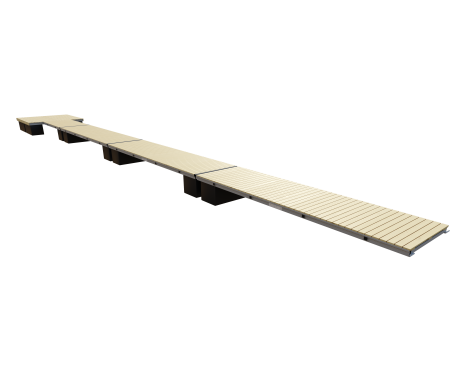 Brygga Ulpukka ULCX 3-9-10 är en stor flytbrygga med en totallängd på hela 18.5 meter. Den består av 9 sektioner, vardera 1.2 m x 2.3 m. Den stora och stabila bryggdelen längst ut gör bryggan rymlig och tryggare att vistas på. 3 gångjärn på mitten av landgången gör att din brygga, oavsett vattenstånd, alltid ligger i våg utanför gångjärnet.