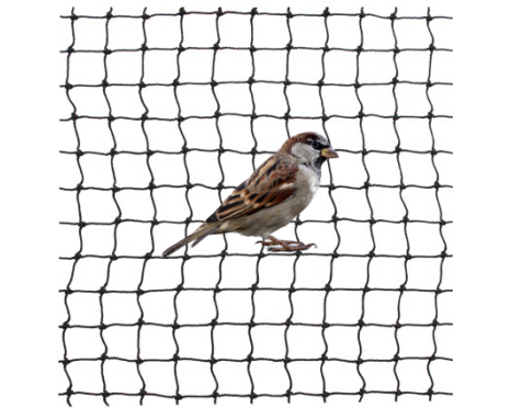 skyddsnät i mycket stark nylon som används för att stoppa fåglar eller för att förhindra rovfåglar att ta sig in i fågelhängn. Enkelt att klippa till mindre storlekar.