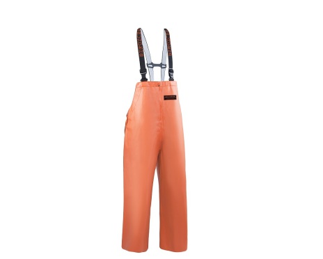 Motståndskraftiga hängselbyxor från Grundéns i starkt pvc-material med rymlig passform och sidöppning.