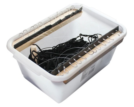 Långrevslåda med 25 krokar 4/0. Komplettera med flöten som lyfter krokarna från botten.