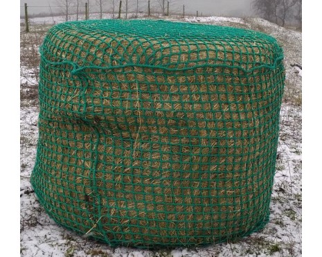 Slow feeding nätpåse med 60 mm maskstorlek för rundbalar med en diameter på 180 cm.