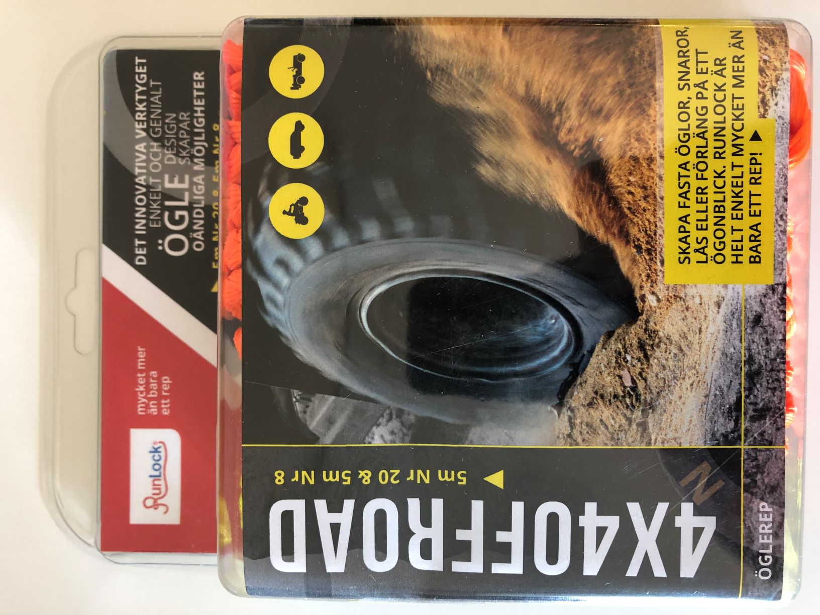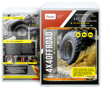 En genial ide, ett rep som inte behöver knytas, inga knutar som glider eller blir hårda som måste skäras upp. Runlock är ett flexibelt polyesterrep designad med öglor längs med hela dess längd och med inbyggd töjbarhet. Kombinationen skapar oändliga möjligheter och användningsområden. Skapa fasta öglor, snaror och lås på ett ögonblick, eller förläng genom att koppla ihop fler rep.