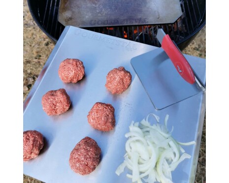 Perfekt för smashburgers men även annat man vill pressa och lägga tryck på vid grillning/stekning. Ett måste för BBQ kvällarna eller en snabb smashburger inne på spisen.